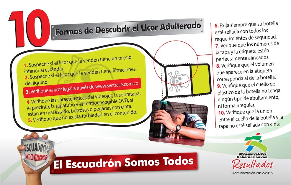 De acuerdo con el Secretario de Hacienda de Risaralda, Vicente Galvis Herrera, en el decomiso se hallaron 300 tapatubos de Aguardiente Antioqueño, 100 tapas de brandy Domecq, 200 termoencogibles de la Fábrica de Licores de Antioquia y 2 esencias.