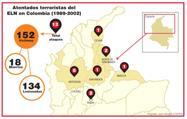 El gesto que más dejó en evidencia la poca intención de verdadera conciliación del Eln se conoce como la Masacre de Machuca. En 1998 un grupo de elenos detonaron una carga explosiva en el Oleoducto Central de Colombia que dio como consecuencia "colateral" la muerte de 84 personas del corregimiento de Machuca, municipio de Segovia (Antioquia). Entre las víctimas había menores de edad.