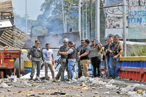 En el puente Francisco de Paula Santander, que conecta a la ciudad colombiana de Cúcuta con la venezolana de Ureña y en donde fueron incendiados dos camiones que llevaban ayuda humanitaria, la Policía mantuvo el control.