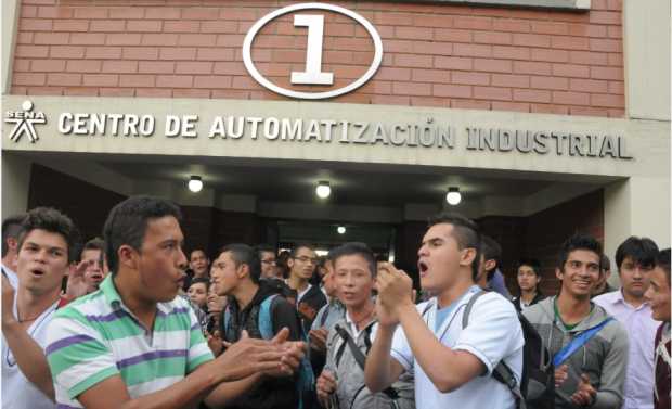 Desde la 1:00 de la tarde los estudiantes del SENA están en la sede del centro, esperando que la directora Nacional, Gina Parody, salga de una de las oficinas. Los alumnos exigen que dialoguen con ellos frente a la situación que vive la regional Caldas.