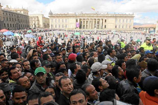 Miles de reservistas del Ejército colombiano se congregaron ayer en la céntrica Plaza de Bolívar de Bogotá para reclamar una indemnización del Gobierno a quienes prestaron el servicio militar obligatorio entre 1971 y el 2010.