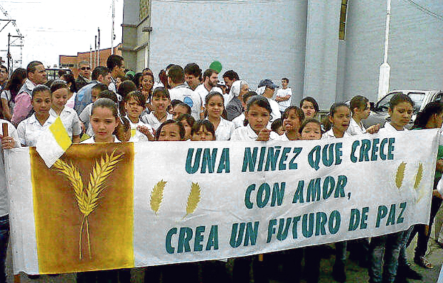 Expresó: "la paz hay que cultivarla desde el corazón" y por eso pidió a las familias permanecer unidas y fomentar los valores. Además pidió a los violentos de todos los grupos armados dejar las armas.