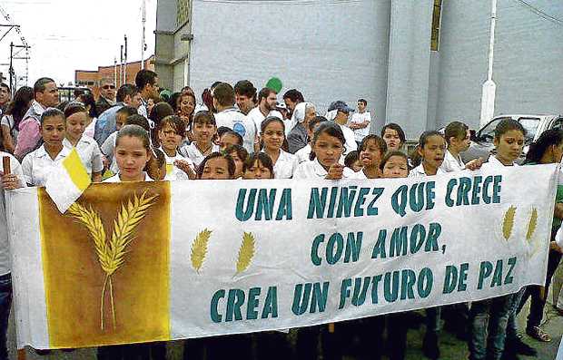 Luciendo camisetas blancas, portando globos de colores y con banderas de Colombia habitantes y visitantes de la población enviaron un mensaje de paz a los violentos.
