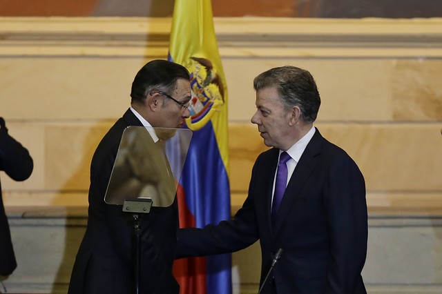 El presidente colombiano, Juan Manuel Santos, pidió hoy a los nuevos miembros del Congreso, así como a su sucesor, Iván Duque, cuidar y defender la paz lograda con la guerrilla de las FARC, que por primera vez tiene representación en el Senado y la Cámara.