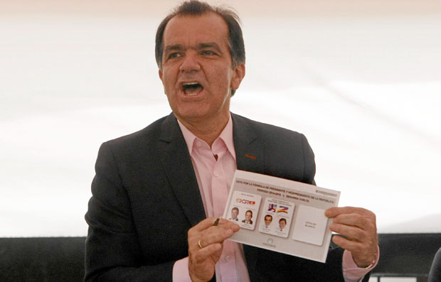 "En nombre de la paz, el gobierno Santos impulsó la mayor corrupción de la historia caracterizada por abuso de Gobierno, entrega de sumas de dineros a parlamentarios para compra de votos, oferta de dineros del Gobierno a Alcaldes y Gobernadores para forzarlos a intervenir ilegalmente en la campaña en favor del presidente-candidato, compra de votos, violación de la Ley de Garantías, propaganda ilegal con dineros del Estado en pauta publicitaria, que coincide con la publicidad del candidato-presidente".