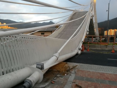 Cuatro civiles y tres militares resultaron heridos ayer, luego de que se presentara el colapso de un puente peatonal en la calle 11 con 103, en el norte de Bogotá.