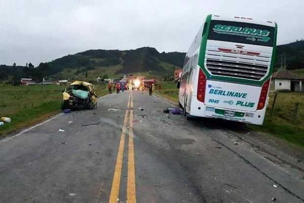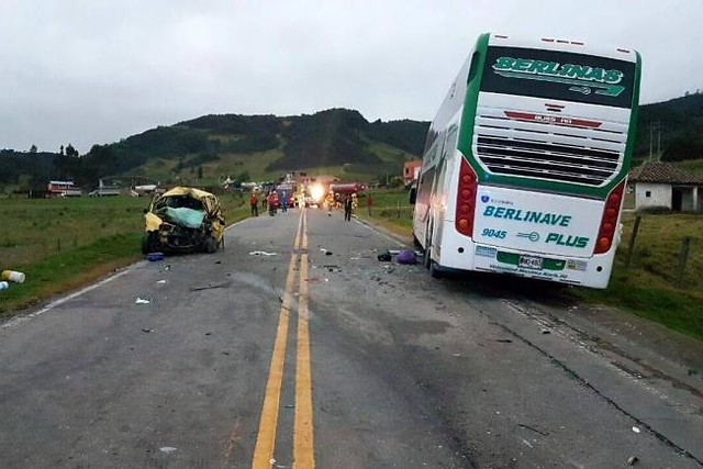 De acuerdo con el reporte de la Policía de Tránsito, en Boyacá en las últimas horas se presentaron dos accidentes. El reporte del comandante de la Institución en el departamento, coronel Juan Darío Rodríguez, señala que un bus afiliado a la empresa Berlinas que cubría la ruta Bucaramanga – Tunja, chocó contra un taxi en el sector de Casa Blanca, municipio de Arcabuco.
