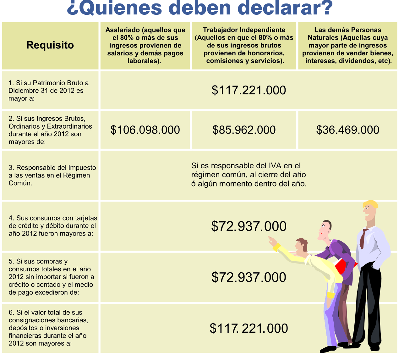 * El impuesto a la renta para el 2013 se pagará como se venía haciendo hasta ahora, dado que la base gravable del mismo para ese año son los ingresos del 2012.