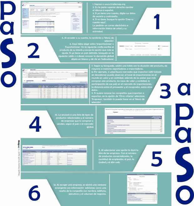 Esta base datos en línea es interactiva y proporciona estadísticas del comercio, indicadores sobre exportación, demanda internacional, mercados alternativos y el papel de los competidores, tanto de los productos como de los países (Ver recuadro Características).