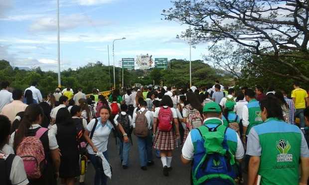 La Guardia Nacional Bolivariana (GNB) permitió el paso, por el puente Internacional Simón Bolívar, de 50 niños que viven en Venezuela y estudian en Colombia. Se espera que en unos minutos pasen alrededor de 300 estudiantes más por este puente fronterizo.