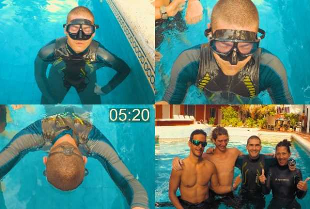 En el curso logré estar bajo el agua sin respirar durante 5:25 minutos, algo que realmente nos sorprendió. Los resultados de este entrenamiento me dieron mucha confianza para sentirme seguro en caso de que alguna situación se complicara durante la travesía.