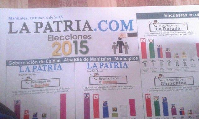 La única encuesta que financió el Periódico de casa fue la de intención de voto para la Alcaldía de Manizales y la Gobernación de Caldas, realizada por la firma Cifras y Conceptos. Los resultados fueron publicaron en la edición del pasado domingo.