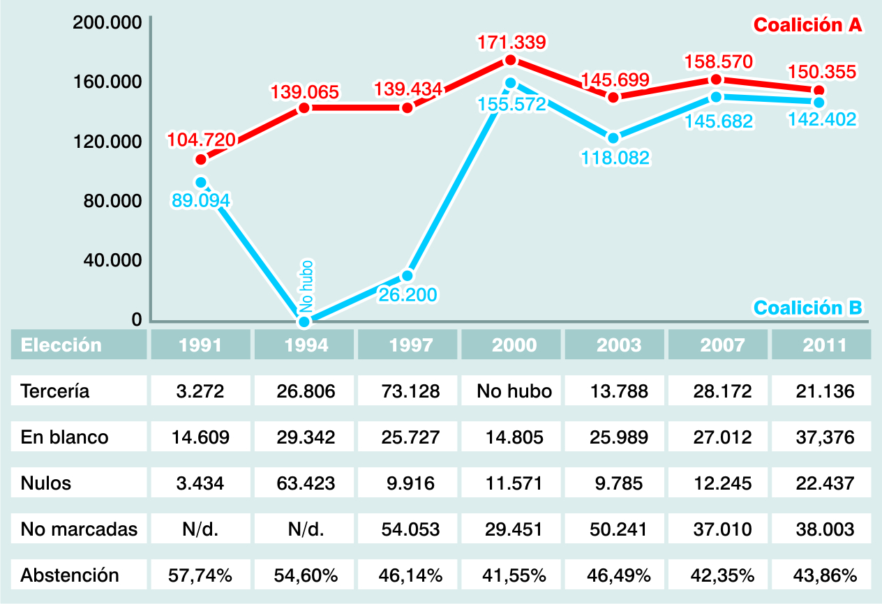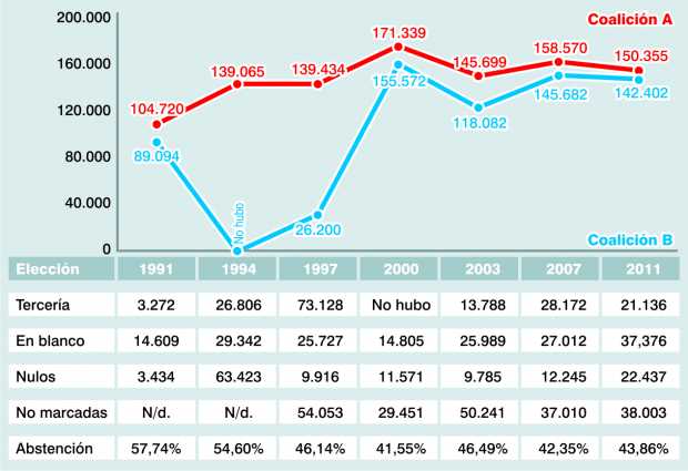 Desde ese momento, la coalición A no recuperó la Alcaldía hasta ahora, siempre en manos de la B, aunque estuvo a 535 votos de lograrlo, en la elección de Luis Roberto Rivas, que se enfrentó a Fernando Gómez Chica, en unas votaciones también atípicas en mayo del 2005.