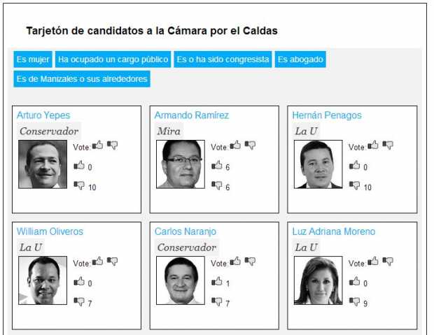 En su página web, el portal de información política La Silla Vacía diseñó un 'tarjetón' para conocer el historial de varios de los aspirantes a la Cámara de Representantes por Caldas para las próxima elecciones del 9 de marzo.
