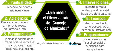 Desde el 2008 funcionó el Observatorio del Concejo de Manizales, iniciativa de veeduría ciudadana dirigida por el docente universitario y politólogo Juan Camilo Arroyave, quien indicó que el seguimiento y el control social logró reducir el ausentismo en la corporación. “Los concejales empezaron a sentir presión y más compromiso con la asistencia a las plenarias”, dijo.