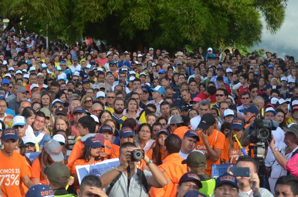 Unos minutos después, en medio de los continuos llamados de asistentes que le gritaban "papacito", bizcocho", "ese es, ese es", el político, dio gracias por la campaña que se ha hecho, por la votación del pasado 27 mayo, y hasta auguró su triunfo: "...Y gracias por la victoria que tendremos el 17 de junio".