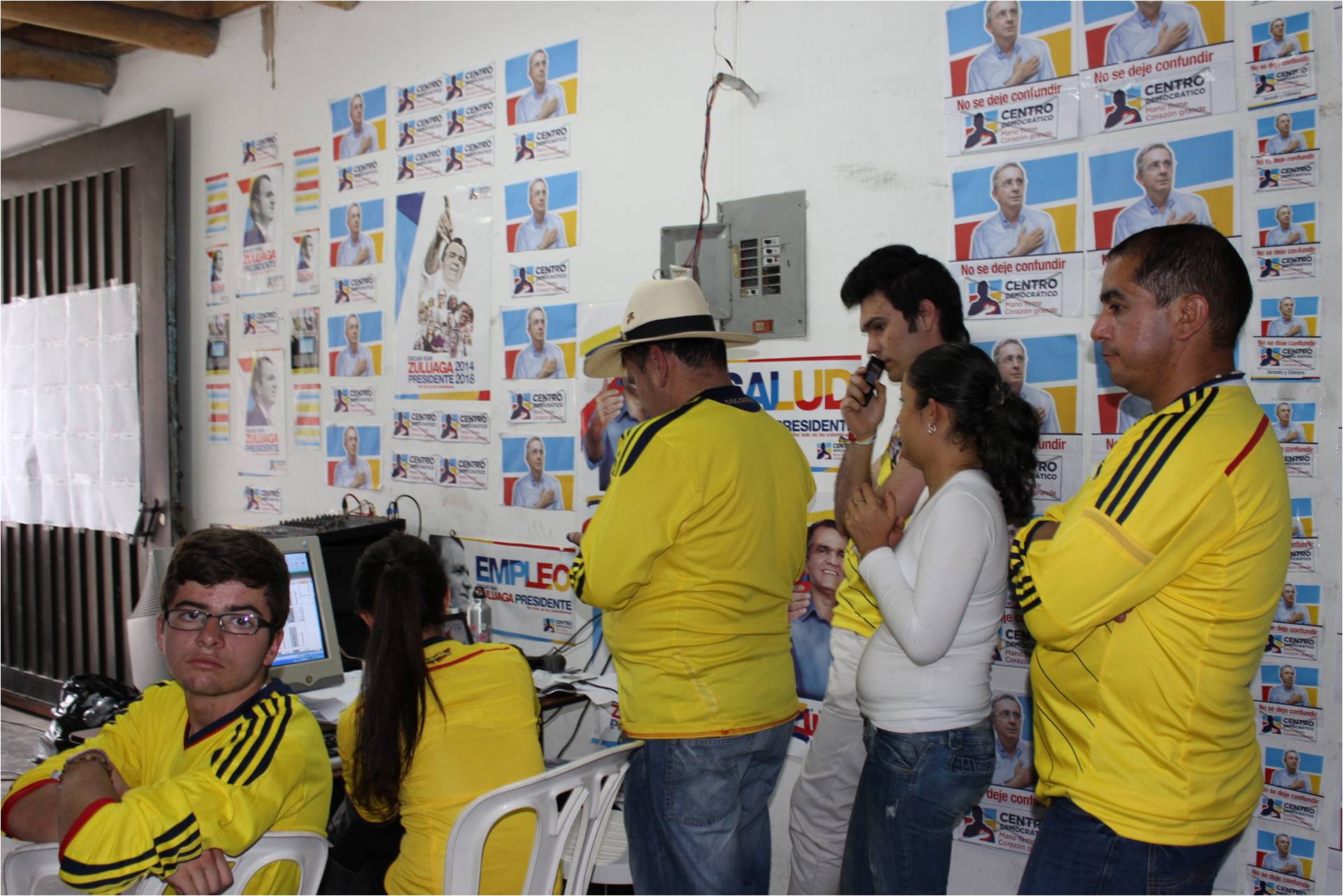 Mientras la gente esperaba en el parque, las campanas de la iglesia sonaban y en la sede de Zuluaga ya habían pocas camisetas amarillas. Jesús Iván Ospina, concejal del Centro Democrático, expresó su decepción por la falta de compromiso de los caldenses: "No entendieron la gran posibilidad de tener a un presidente, no tuvieron pertenencia por el departamento".
