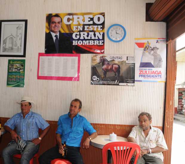 Otros habitantes tienen el mismo argumento de García. Por ejemplo, en una pared de tablilla del Bar Cafetería Rico Pan está pegado un afiche de Óscar Iván en el que no sale acompañado del expresidente Uribe, como en los demás, sino de la frase "creo en este gran hombre". Diego Marín Ospina, propietario del establecimiento, afirmó que el afiche lo trajo de Medellín.