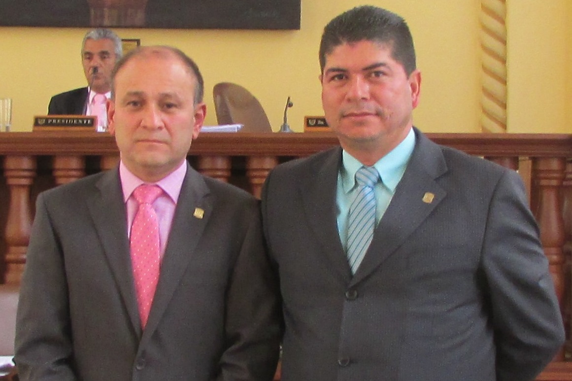 Félix Chica Correa (derecha) e Islén Pineda Zuluaga, elegidos como presidente y primer vicepresidente de la Asamblea de Caldas para el 2015.