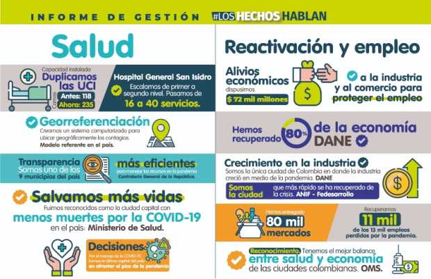 En los últimos días, el alcalde emprendió un recorrido por las calles para contarle a la ciudadanía cuáles han sido los logros en estos 11 meses de Gobierno. “En tiempo récord duplicamos la capacidad de las UCI y logramos que el Hospital General San Isidro pasara de prestar 16 a 40 servicios, gracias al cambio de primer a segundo nivel de complejidad”, asegura.
