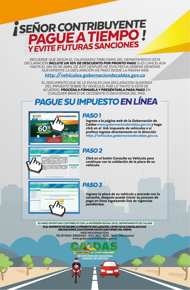 ¡Liquidatón de impuesto vehicular en Caldas. Unidad de Rentas!
