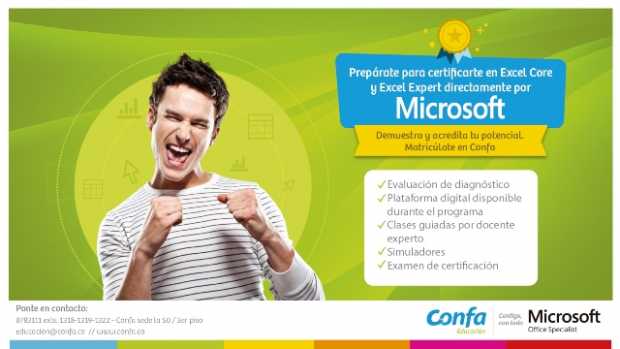 Confa, pensando en apoyar a los profesionales en el desarrollo de sus competencias y así posibilitar el acceso a ofertas laborales diferentes, que aporten al mejoramiento de la calidad de vida de las familias, presenta en esta oportunidad el entrenamiento para la Certificación Internacional en Microsotf Excel Core y Expert.