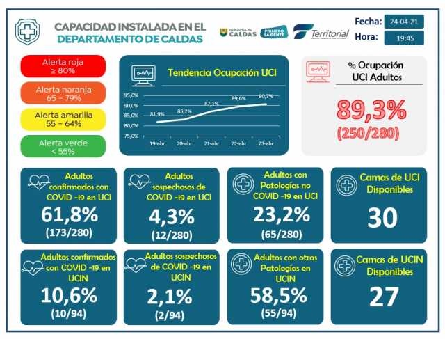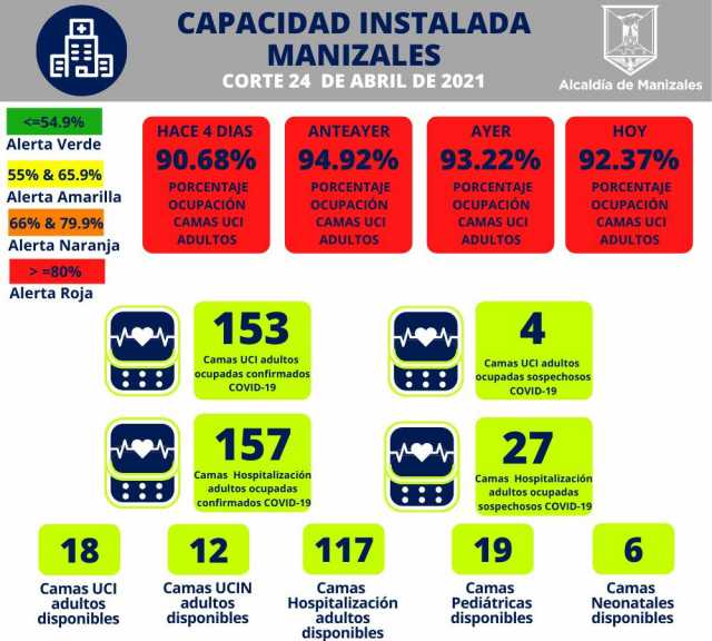 Los nuevos casos se presentaron en Belalcázar (3), Chinchiná (14), La Dorada (3), Manizales (132), Neira (3), Pensilvania (4), Risaralda (1), Salamina (2), Victoria (1), Villamaría (15) y Viterbo (2).