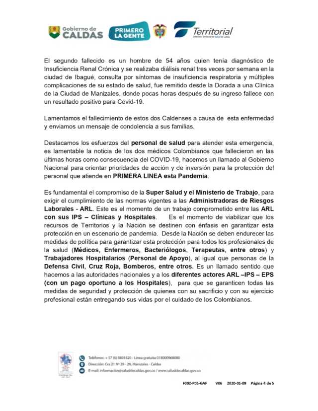 - Hombre de 57 años en El Espinal (Tolima). Comorbilidades: HTA, EPOC, fumador.