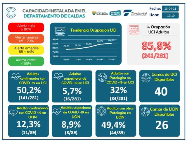 La entidad informó además que hubo 10 personas fallecidas por el virus: 5 en Manizales, 2 en Villamaría, 1 en Norcasia, 1 en Salamina y 1 en Chinchiná. Y 5 fallecidos por otras causas.
