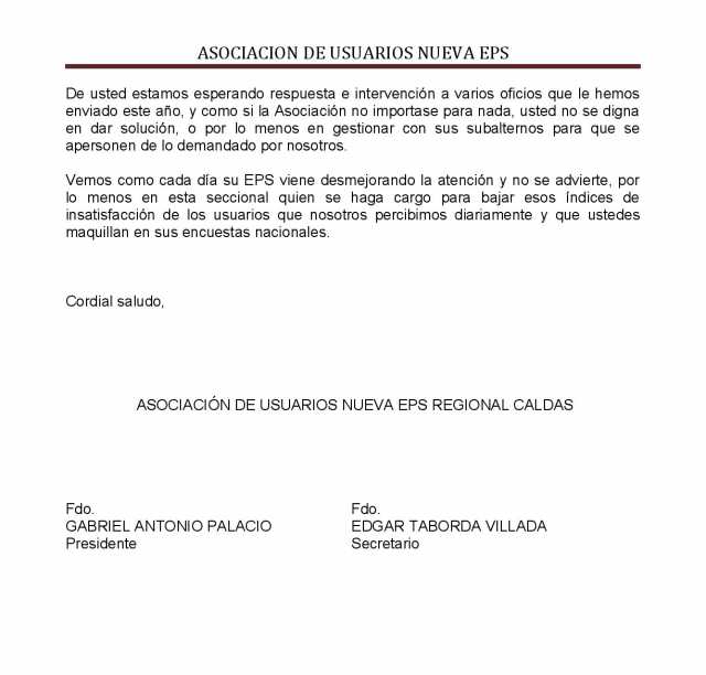 En el documento se lee: ...Los directivos zonales y locales hacen caso omiso de las reclamaciones y solicitudes que hacemos en los diferentes temas que tienen que ver con la atención a los usuarios".