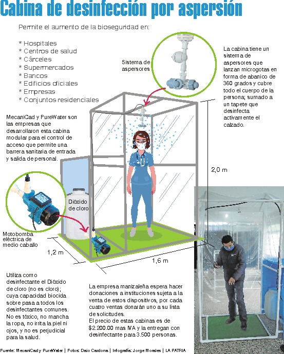 “Emas fabrica los arcos y las cámaras de aspersión cumpliendo con un rigor de tener un aerosol menudo que no sea lesivo para la piel y Aguas diluye el hipoclorito hasta convertirlo en dióxido de cloro”, expuso el secretario de Salud de Manizales.