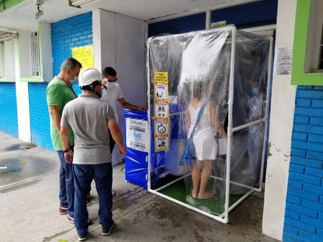 El propósito, explica, es desinfectar la ropa y los zapatos de quien ingresa, porque ayudaría a reducir el riesgo de contagio tanto al personal de salud como de quien tenga el virus.