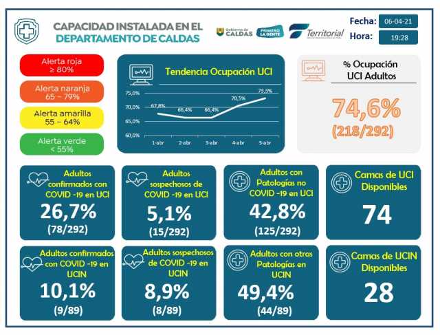 Los nuevos casos se notificaron en Aguadas (1), Anserma (2), Belalcázar (3), La Dorada (8), La Merced (1), Manizales (163), Manzanares (2), Neira (2), Pensilvania (1), Salamina (1), Supía (9) y Villamaría (27).