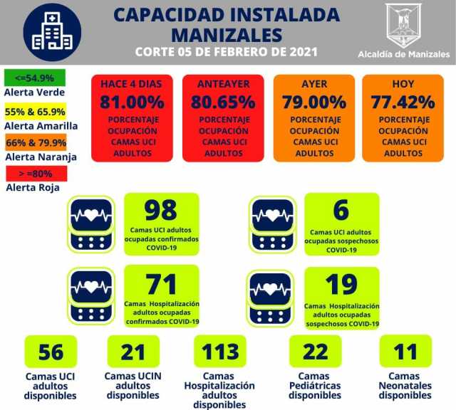 La entidad también informó de siete fallecimientos por el coronavirus: 2 en Manizales, 2 en La Dorada, 1 en Palestina, 1 en Pensilvania y 1 en Pácora. Además de una muerte por otras causas en Victoria.