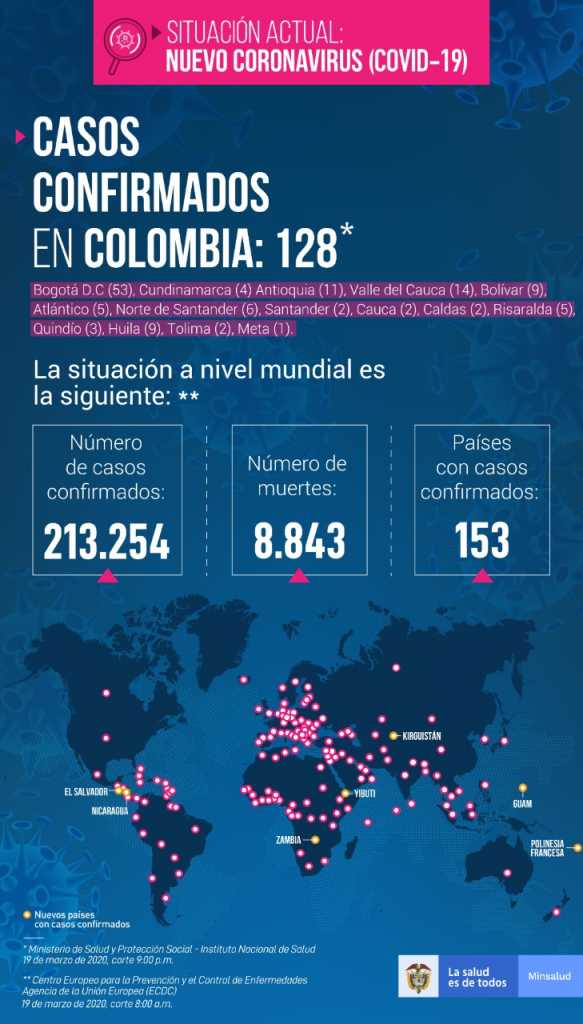 Caldas suma otra persona contagiada por coronavirus tras nuevo caso en Viterbo: Colombia llega a 128