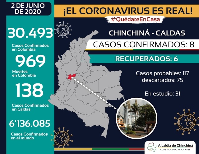 El municipio tenía seis contagiados que ya se habían recuperado. Con este nuevo reporte Chinchiná suma ocho casos confirmados, por lo que ahora tiene dos activos.