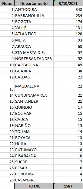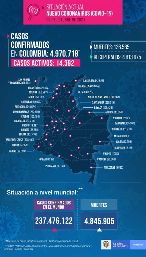 Colombia añade 1.587 casos nuevos y suma 33 fallecimientos por covid-19