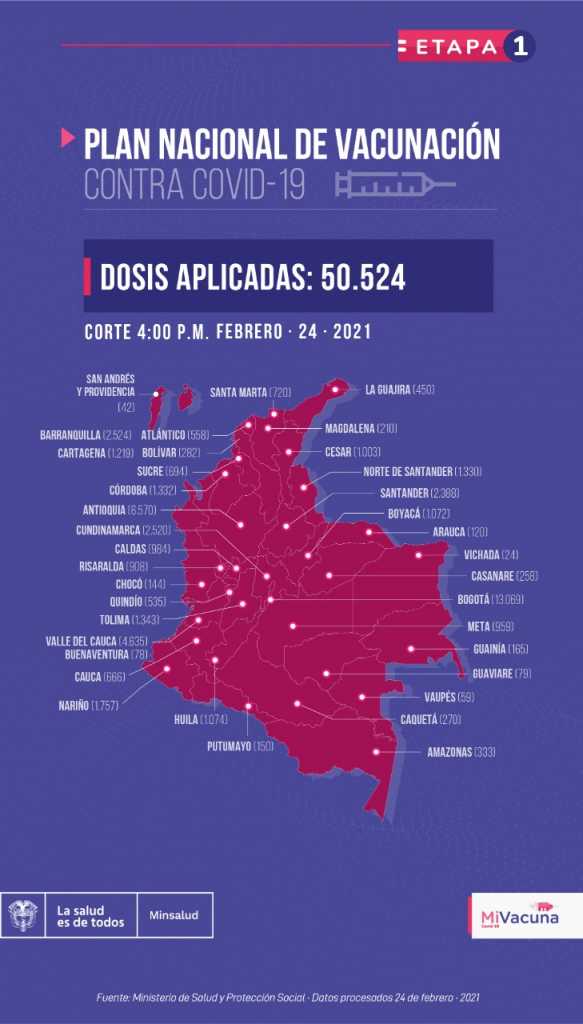 Se trata del segundo cargamento de vacunas de Pfizer que llega al país pues el 15 de febrero se recibió el primero, de 50.000 dosis, con el cual se inició la vacunación en Colombia dos días después.