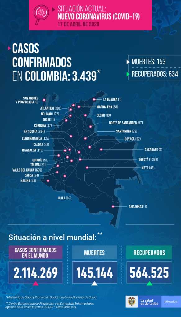 Colombia llega a 153 fallecidos por coronavirus. Hoy se registraron 9 decesos