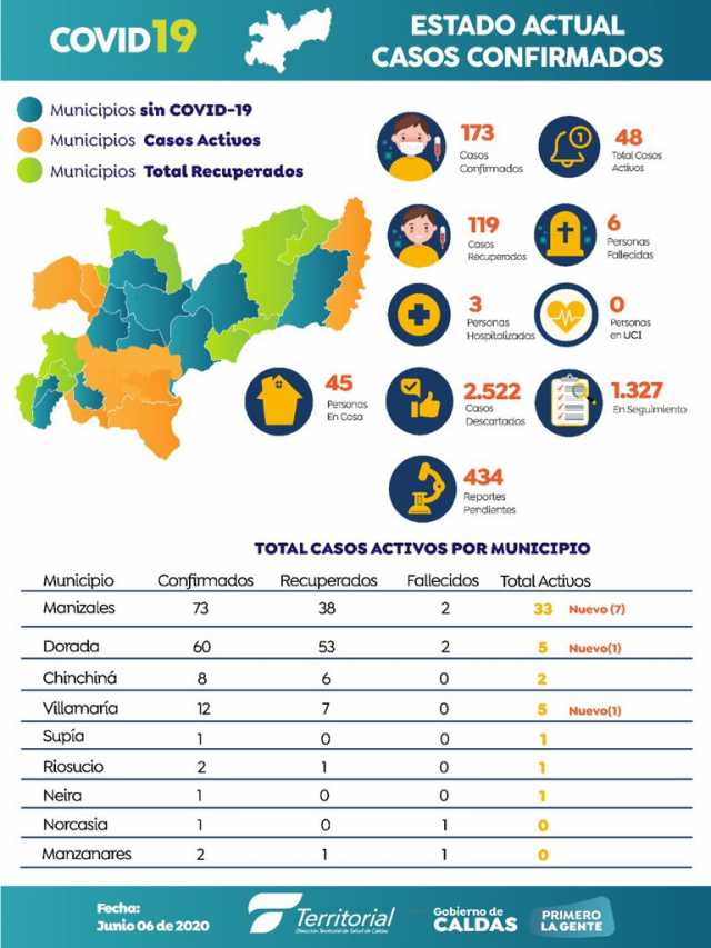 Sin embargo, el último reporte de la Dirección Territorial de Salud, notificó el contagio de 9 personas, siete en Manizales, uno en La Dorada y uno en Villamaría.