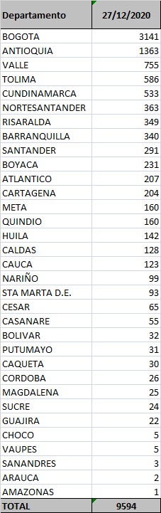 Colombia sobrepasa los 42.000 fallecimientos por covid-19