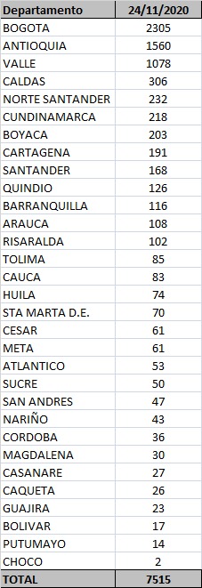 Colombia suma 7.515 nuevos contagios de la covid-19 y acumula 1,2 millones de casos confirmados