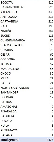 Hay 482 conglomerados en el país. Los territorios son: Amazonas, Antioquia (Ituango), Arauca, Atlántico, Barranquilla, Bogotá, Boyacá, Bolívar, Buenaventura, Caldas, Cali, Caquetá, Cartagena, Cauca, Cesar, Chocó, Córdoba, Cundinamarca, Huila, La Guajira, Magdalena, Meta, Nariño, Norte de Santander, Quindío, Risaralda, San Andrés, Santa Marta, Santander, Sucre, Tolima, Valle, Vaupés, Vichada, Guaviare y Guainía.