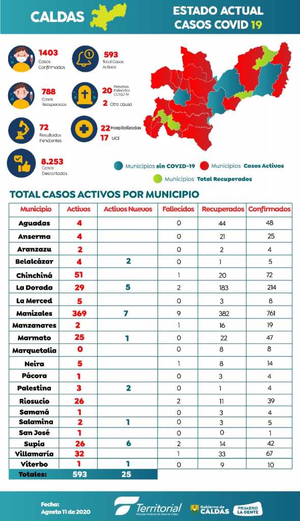 Dos fallecidos por covid-19 en Riosucio, Caldas suma 20 muertos
