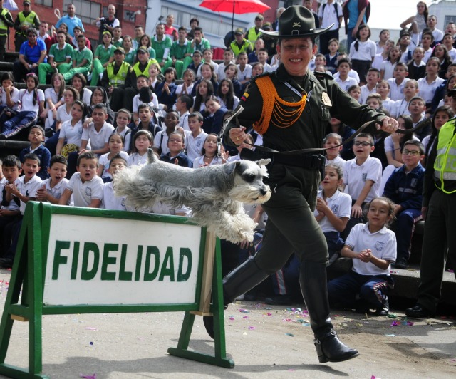 Paul, un schnauzer entrenado por los Carabineros de la Policía Caldas, participó del espectáculo canino que se presentó en el acto.