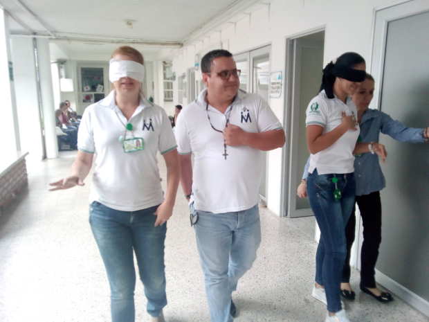 Los empleados caminaron vendados, una actividad de la campaña Mundial de la Prevención.