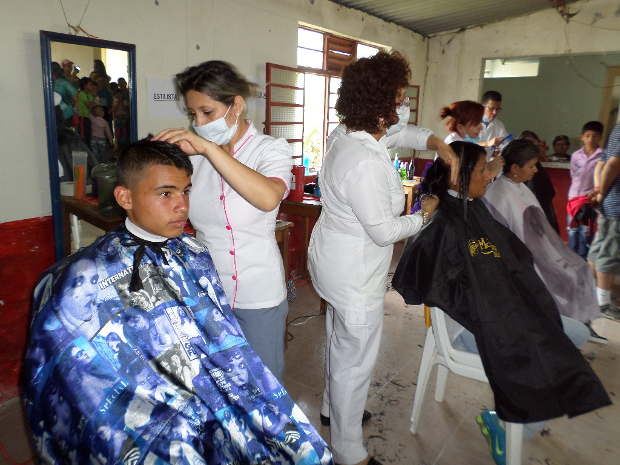 Mientras la jornada de salud se desarrollaba, en el salón comunal los estilistas profesionales, que también donaron su trabajo, hacían un cambio de look a los asistentes.