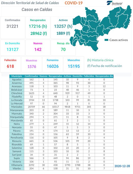 Este lunes se reportaron 142 nuevos contagios de covid-19 en Caldas