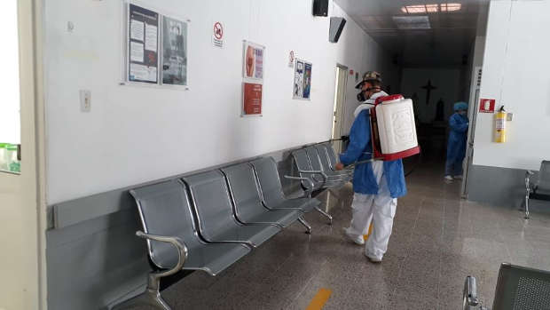 Las directivas del centro asistencial iniciaron un programa de fumigación en las áreas de consulta externa y urgencias y así mantener estas áreas desinfectadas, como campaña para prevenir contagios del coronavirus.