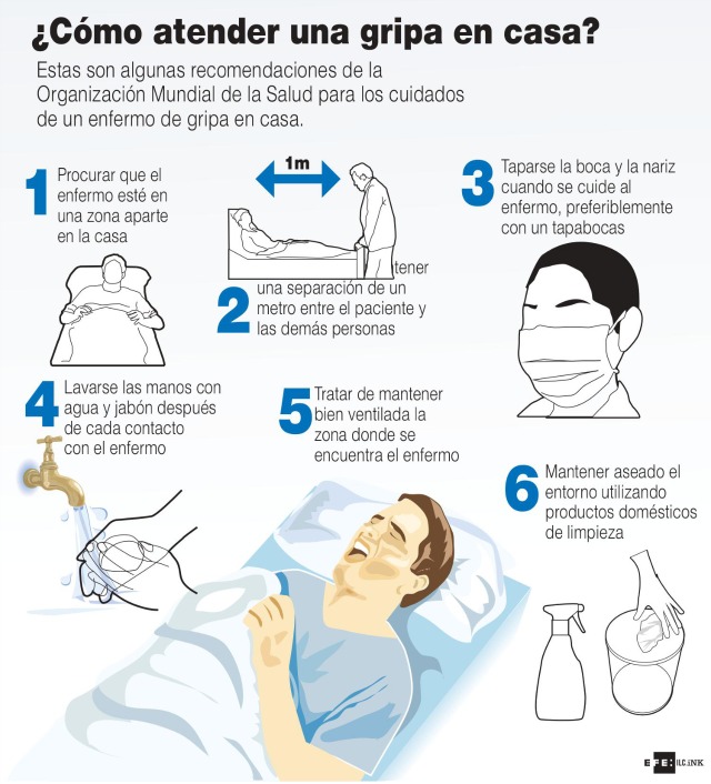 * No utilice las mismas prendas o utensilios de cocina que tocó el enfermo. Póngalos en agua caliente tras su uso.
